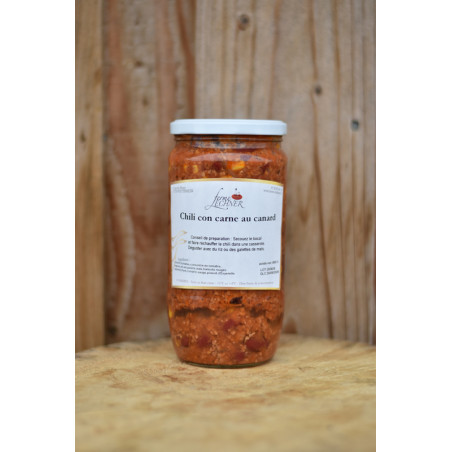 Ingrédients: canard, tomates, concentré de tomates, haricot rouge, maîs, sel, poivre, aromates, eau, oignons, ail, piment d'Espelette, paprika, cumin